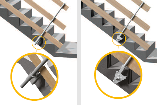 Der Allrounder für die materialschonende Montage ohne Befestigungsmittel. Das Aufschubrohr sorgt für den sicheren Sitz an der Treppenstufe.
