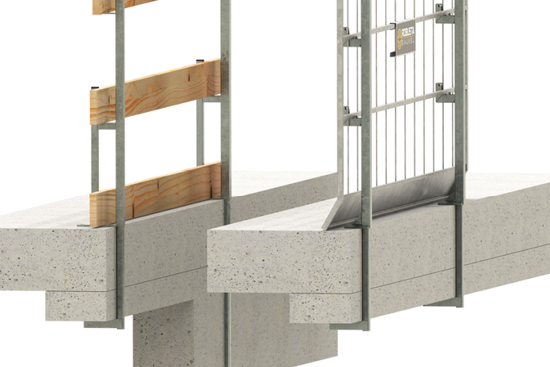 Der FILI-Geländerhalter ist die schnelle und effiziente Lösung für die Absturzsicherung an Filigrandecken. Er wird direkt an den Gitterträgern von Elementdecken befestigt und kann für Gitterelemente und Seitenschutzbretter aus Holz verwendet werden.