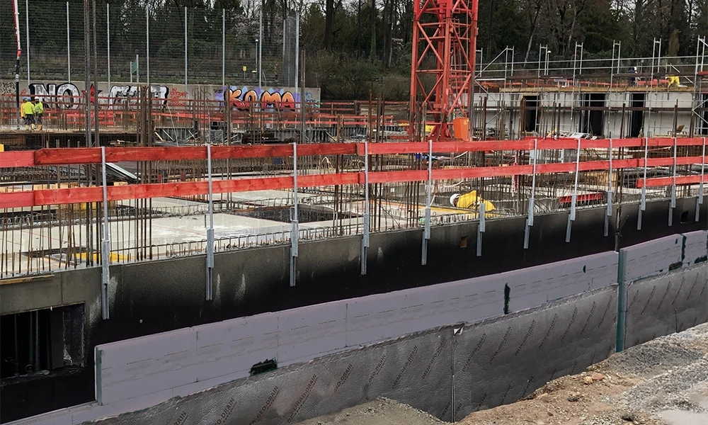 Spundwände und Stahlträger – Seitenschutz an schweren Bauteilen