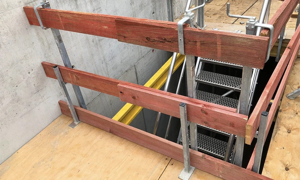 Fahrstuhlschächte, Deckendurchbrüche, Türen und Fenster zählen zu den kritischsten Absturzstellen auf der Baustelle. Mit dieser Lösung lassen sich schmale oder verwinkelte Öffnungen schnell mit Seitenschutzbrettern sichern – ideal, um Absturzgefahren an Schachtkanten zu entschärfen.